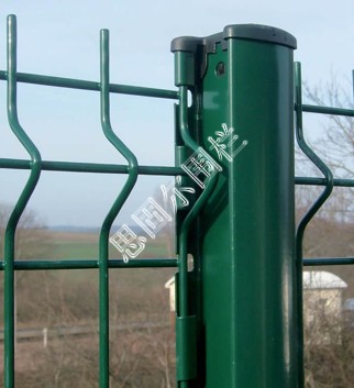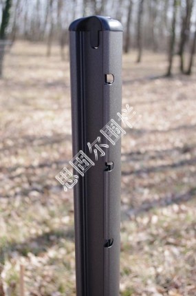 5.Y型立柱---此立柱因形狀而得名。立柱采用圓管、方管等、頂部在焊接成Y型、這樣做的好處是:既美觀,也可以在上面鉤掛刀片刺網大大增強鐵絲網圍欄的安全性能。適用于:飛機場、監獄的防護;