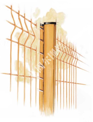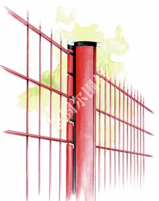 3.桃形立柱---立柱兩側有折彎的凹槽、便于卡住護欄網、使其美觀。適用于三角折彎護欄網、主要用于園林、小區防護等。