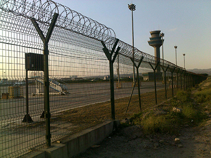 機場隔離網(wǎng)又稱作“Y型安全防御護(hù)網(wǎng)”,機場護(hù)欄網(wǎng)是由V型支架立柱,加強型焊接片網(wǎng),安全防盜連接件和熱鍍鋅刀片刺籠組成強度和安全防御性級別很高。近年來,被廣泛應(yīng)用在機場,軍事基地等高安全場所。