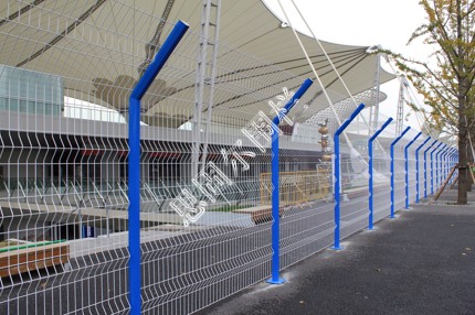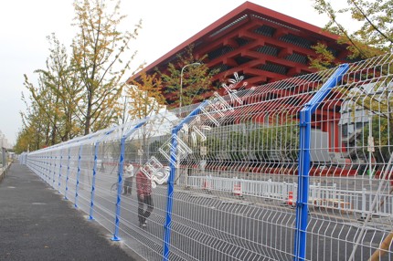 材料:低碳鋼絲(可焊接成不同尺寸的正方形或者長方形網孔、可編制成斜方孔樣式的勾花網)、方管或者圓管做邊框、立柱(圓柱、方柱)、扁鐵(高速公路護欄上會用到扁鐵,使用在頂部的折彎處)
